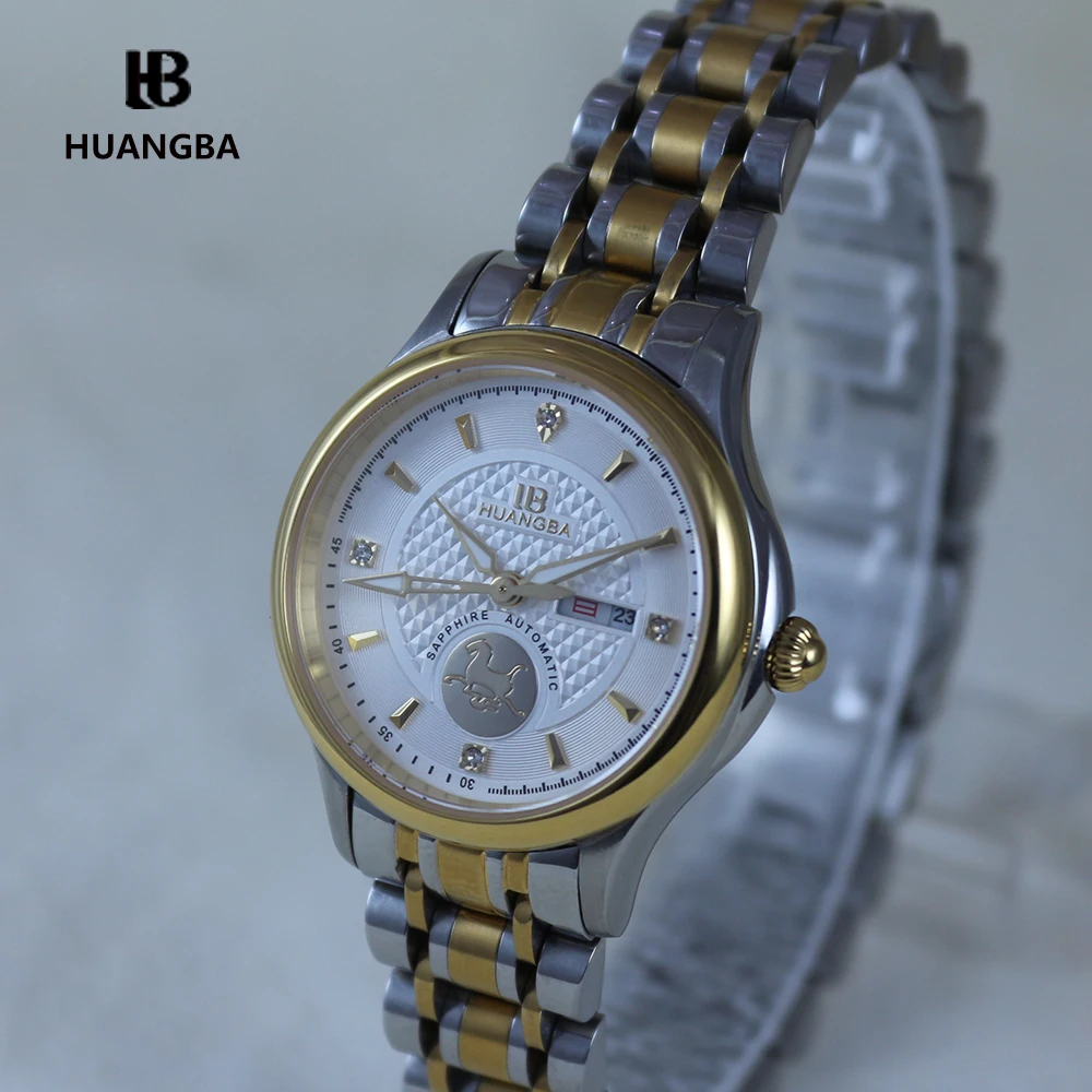 Promo Huangba Women's Watches Mechanical Luxury Brand Sapphire Gold Wristwatch for Ladies Automatical Miy