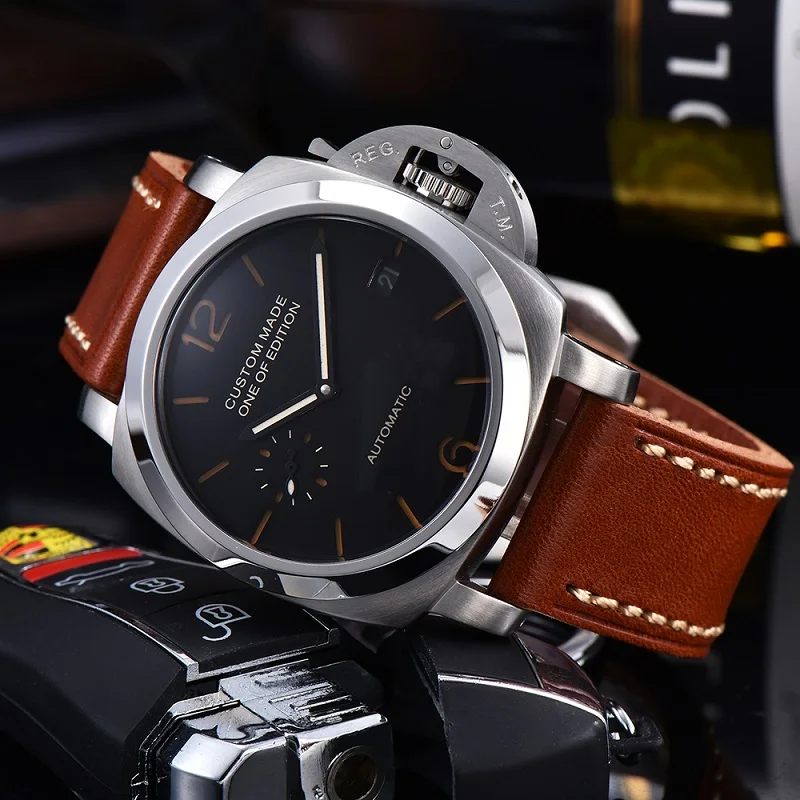 Free shipping 42mm Automatic Mechanical Mens Watch Casual Fashion Leather Strap Waterproof Men Watches