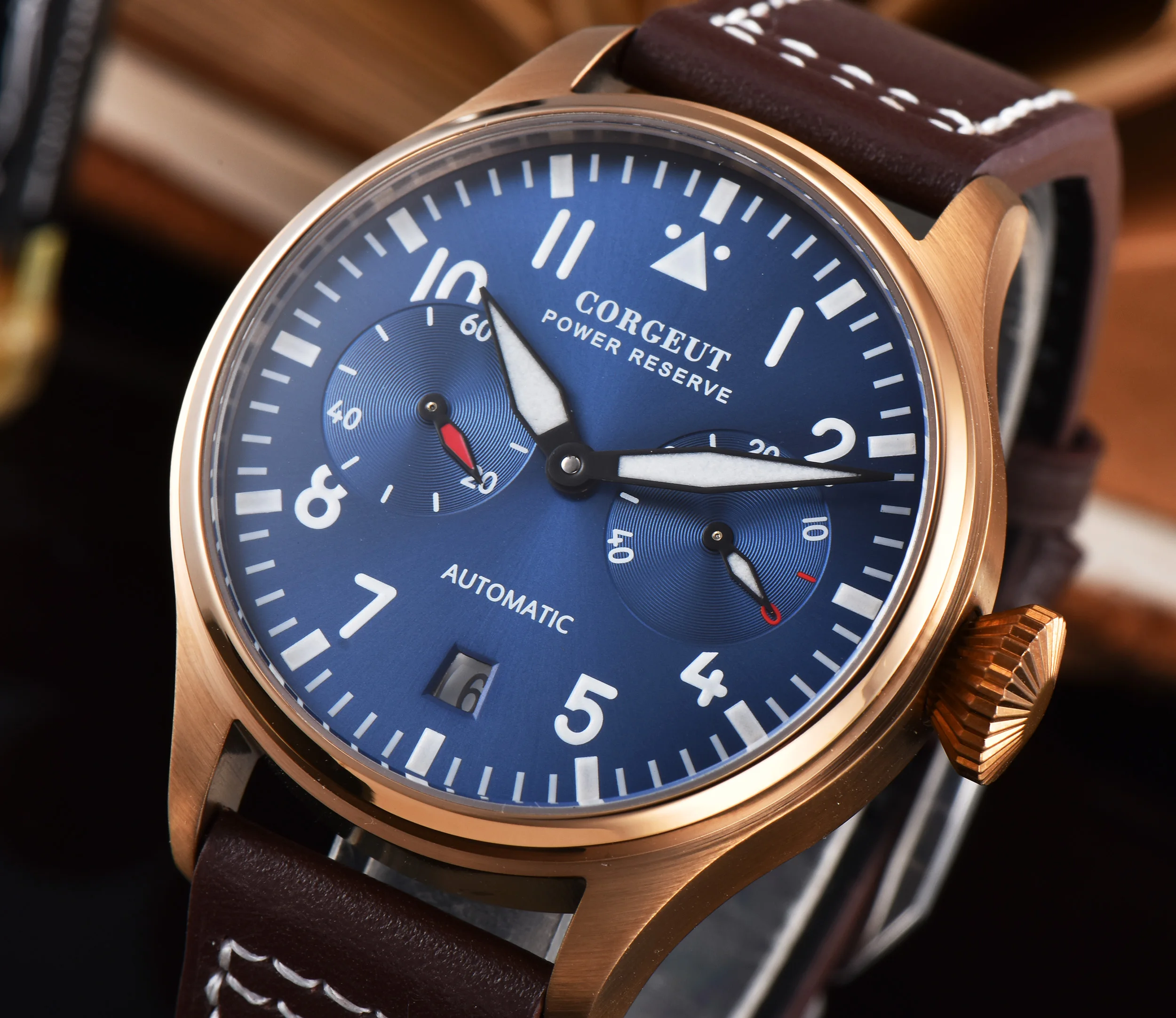 Good Product Corgeut 42mm Blue Dial Power Reserve Date Rose Gold Case Automaitc Men's Watch